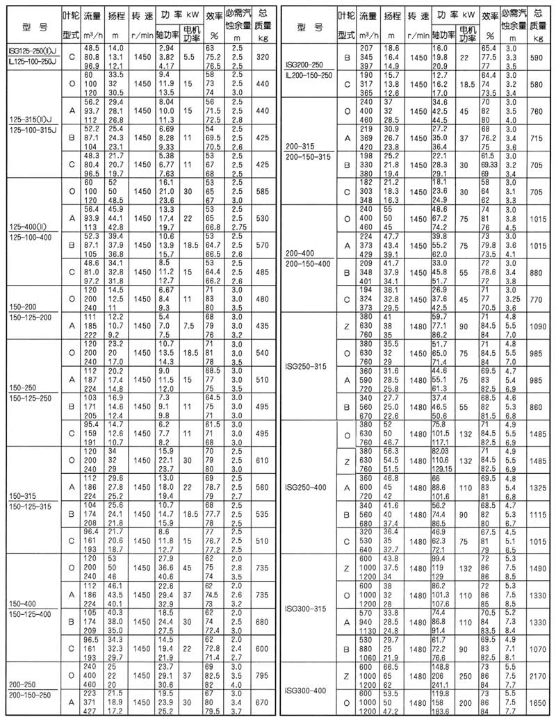 口徑125的ISG型泵,有兩種流量範圍,我們在型號後加(1)和(II)以示區別,如(rú)流量(liàng)160m/h:ISG125-250(1);流量(liàng)200m3/h:ISG125-250(1I)。