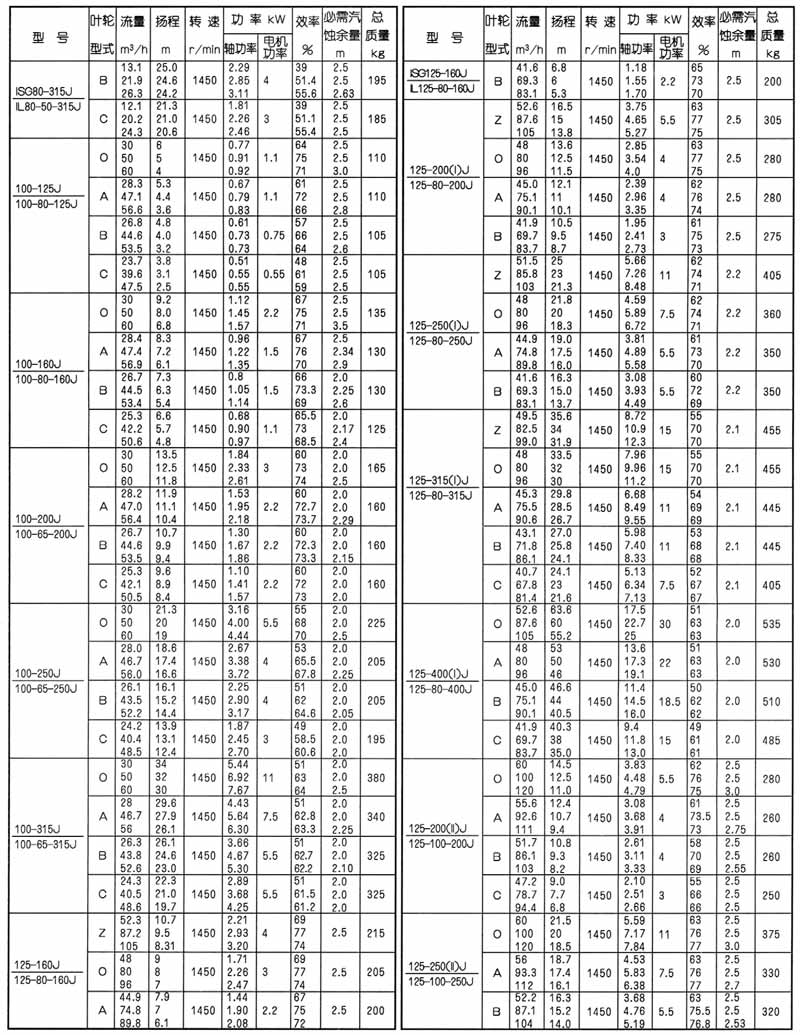 為了節能,部分泵選用了YDX型非標準功率(lǜ)的(de)電機,在該(gāi)泵的配用電(diàn)機(jī)一欄,也同(tóng)時注出了標準(zhǔn)Y(YB)型電機的功率(lǜ)。