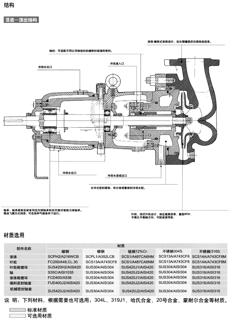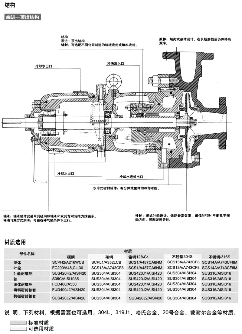 UCW係列泵為單極、單吸(xī)、臥式、殼(ké)體中心線支承結構的離心泵。