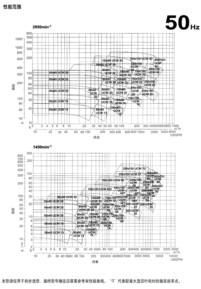(*4)當泵進口和出口(kǒu)相時,進出口尺寸代號可不必重複寫,例如(rú),200 UCWM 20可代表200 X200 UCWM 20.