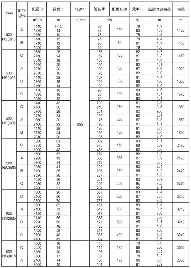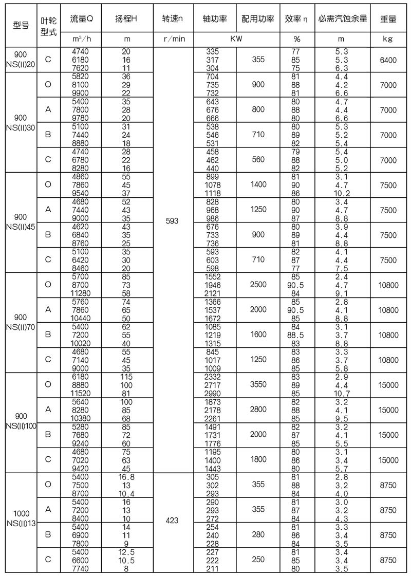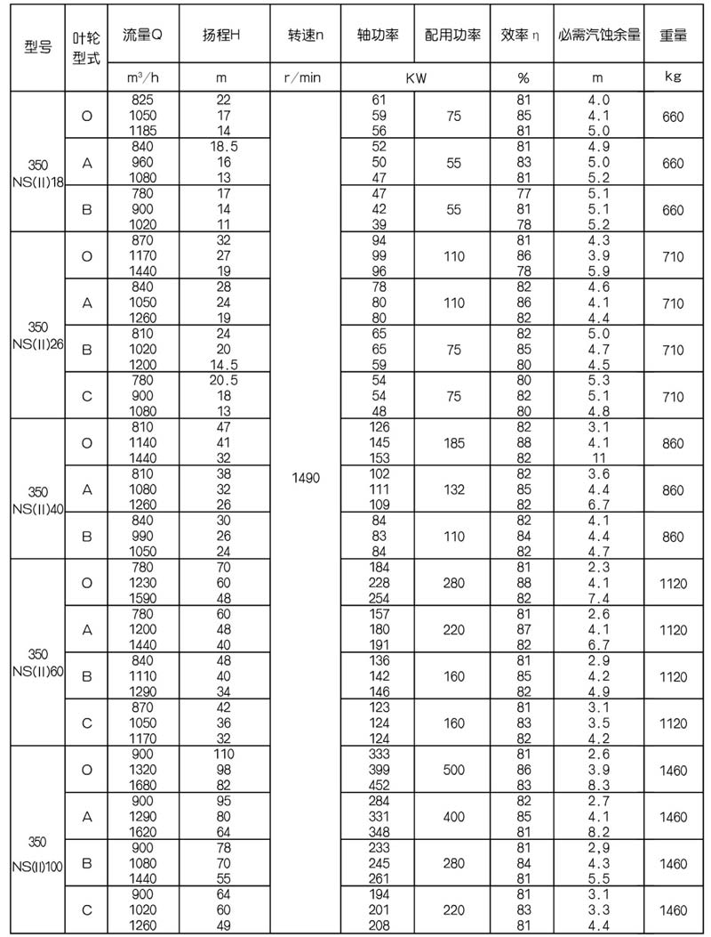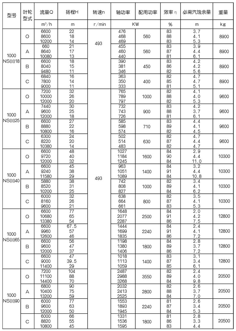 NS(Ⅱ)型泵具有很高的效率,在較寬的流量範圍內(nèi)具有很高的運行效率,可以降低運行費用和選用功率較小的電機,是節能的高效率(lǜ)中開泵。