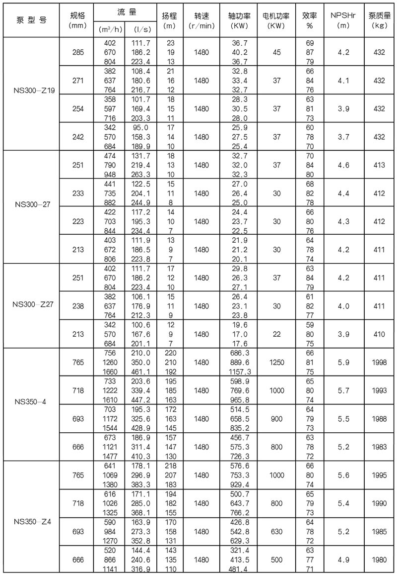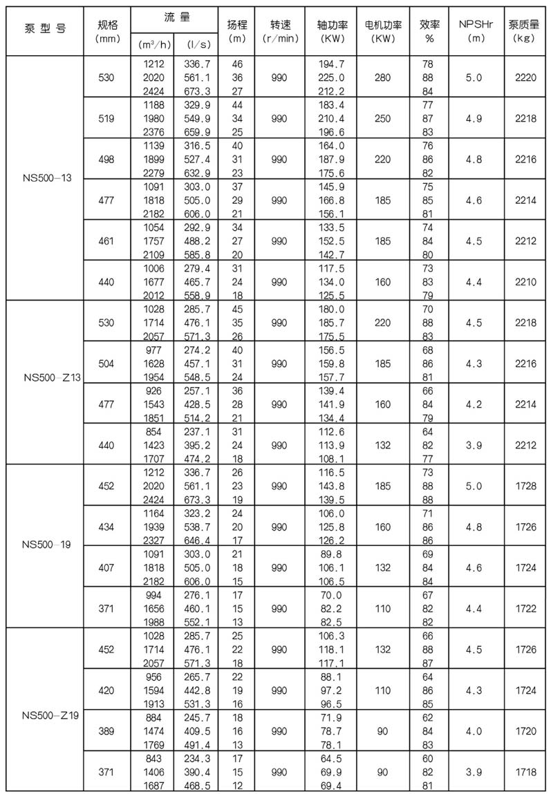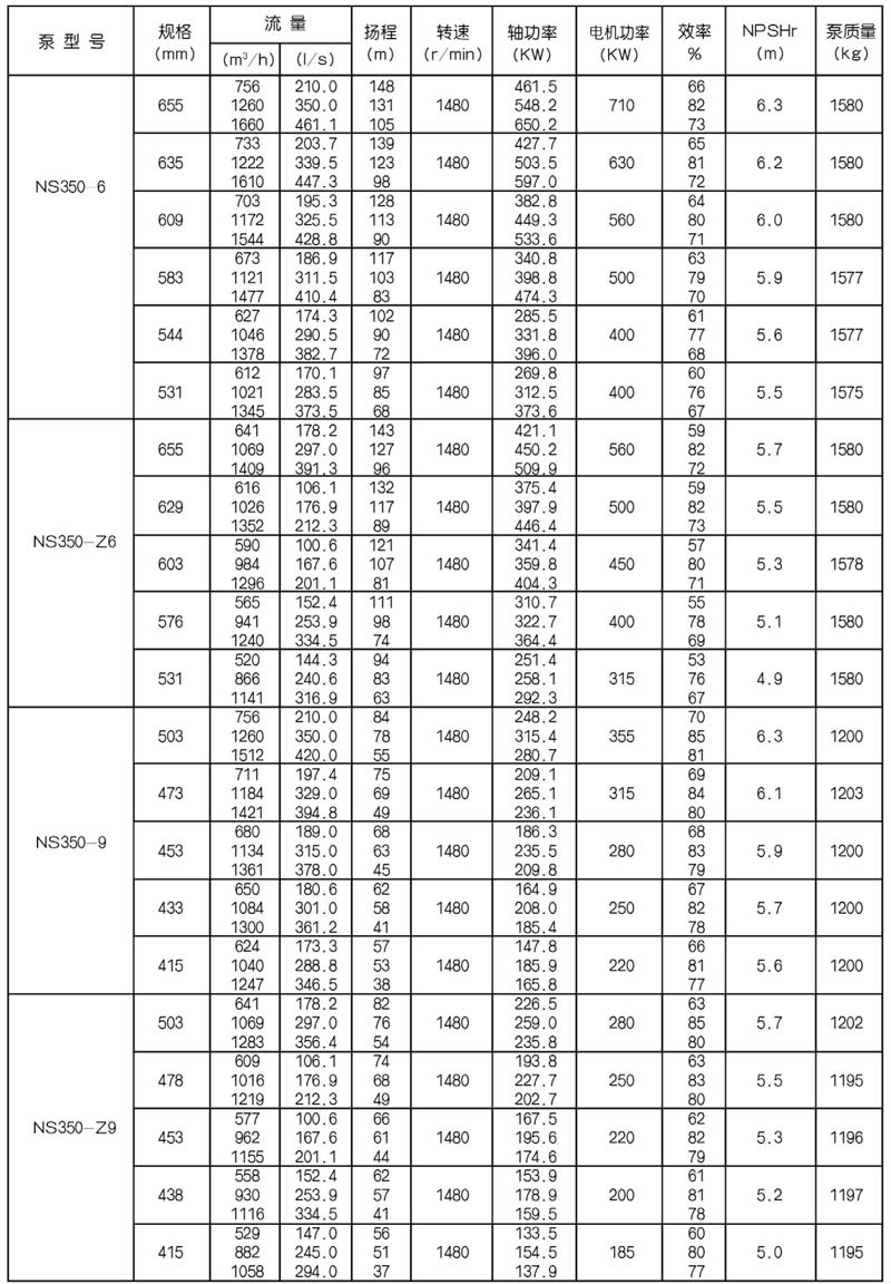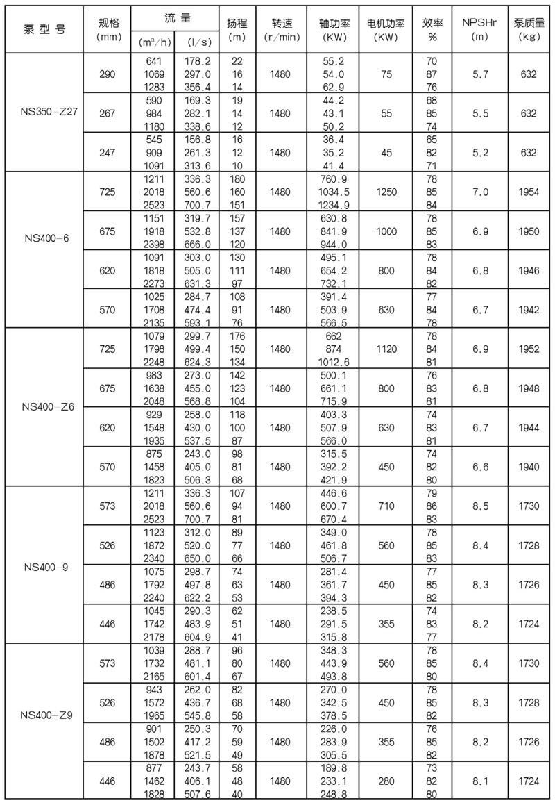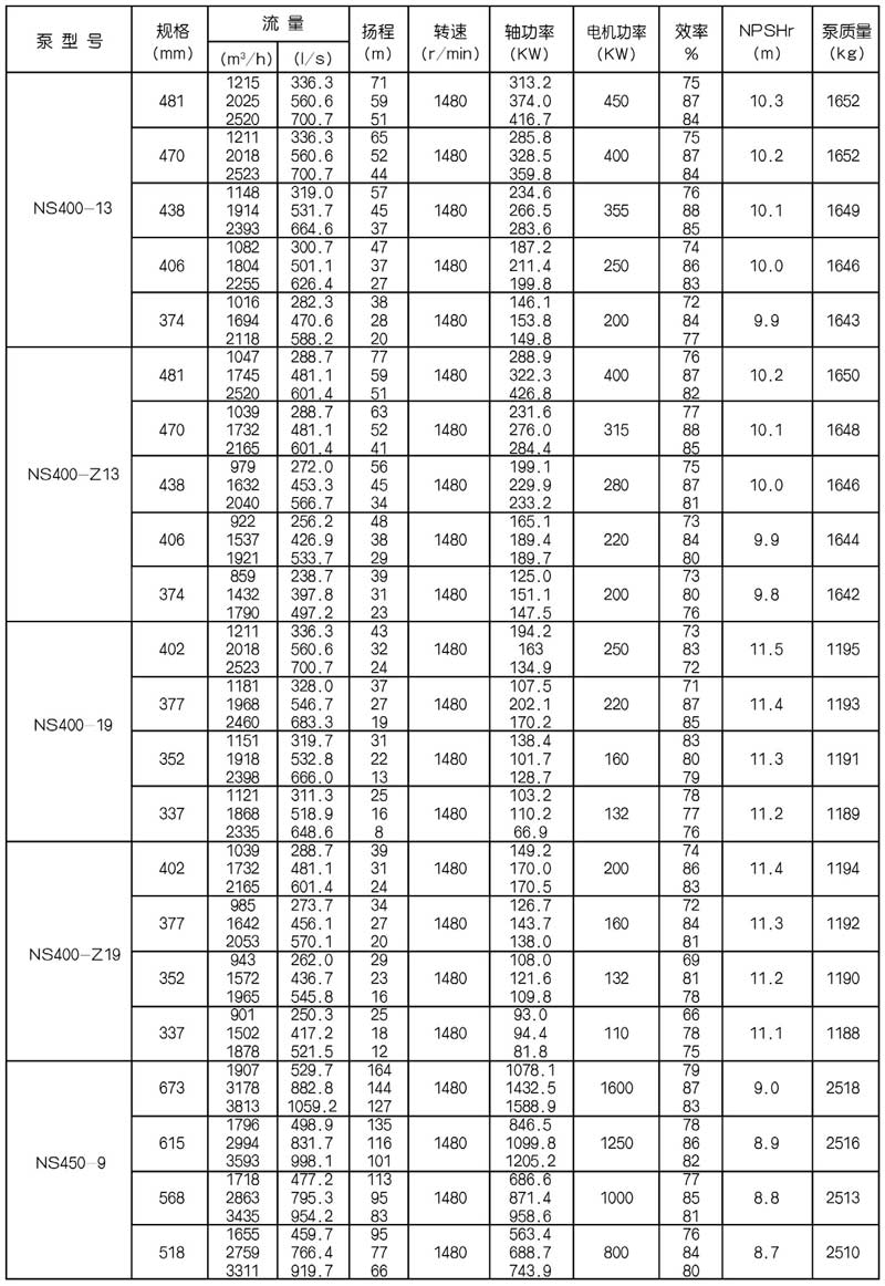 NS型單級雙吸中開式離心泵是我公司總結(jié)國(guó)內外優秀水(shuǐ)力模型(xíng),廣泛吸收國內外同類產品(pǐn)先進的(de)設計製造技術,根據國內市場實際需要開發的新型中開式雙吸(xī)泵。全係列泵(bèng)型譜內各型號(hào)規劃更加科學合理,高揚程雙吸泵可以代替部分多級泵,大流(liú)量雙吸泵可以代替部分混流泵,優化(huà)匹(pǐ)配各水力尺寸,汽(qì)蝕和效率兼顧,滿足GB/T19762能效評價值,達(dá)到節能目標。結構再創新,運轉可靠維護方便、延長(zhǎng)使用壽命,使中開(kāi)式雙吸離心泵優秀泵型發揮(huī)更大效益。我公司目前生產的雙吸(xī)泵有46種型號,390個規格,處於節能和使(shǐ)用性能(néng)範圍考慮,一個(gè)型號有兩種葉輪,叫標準(zhǔn)葉輪和窄葉輪,以更優性能滿足使用工況要求(qiú)。本(běn)係列泵符合ISO2548C、GB3216、GB/T5657標準。