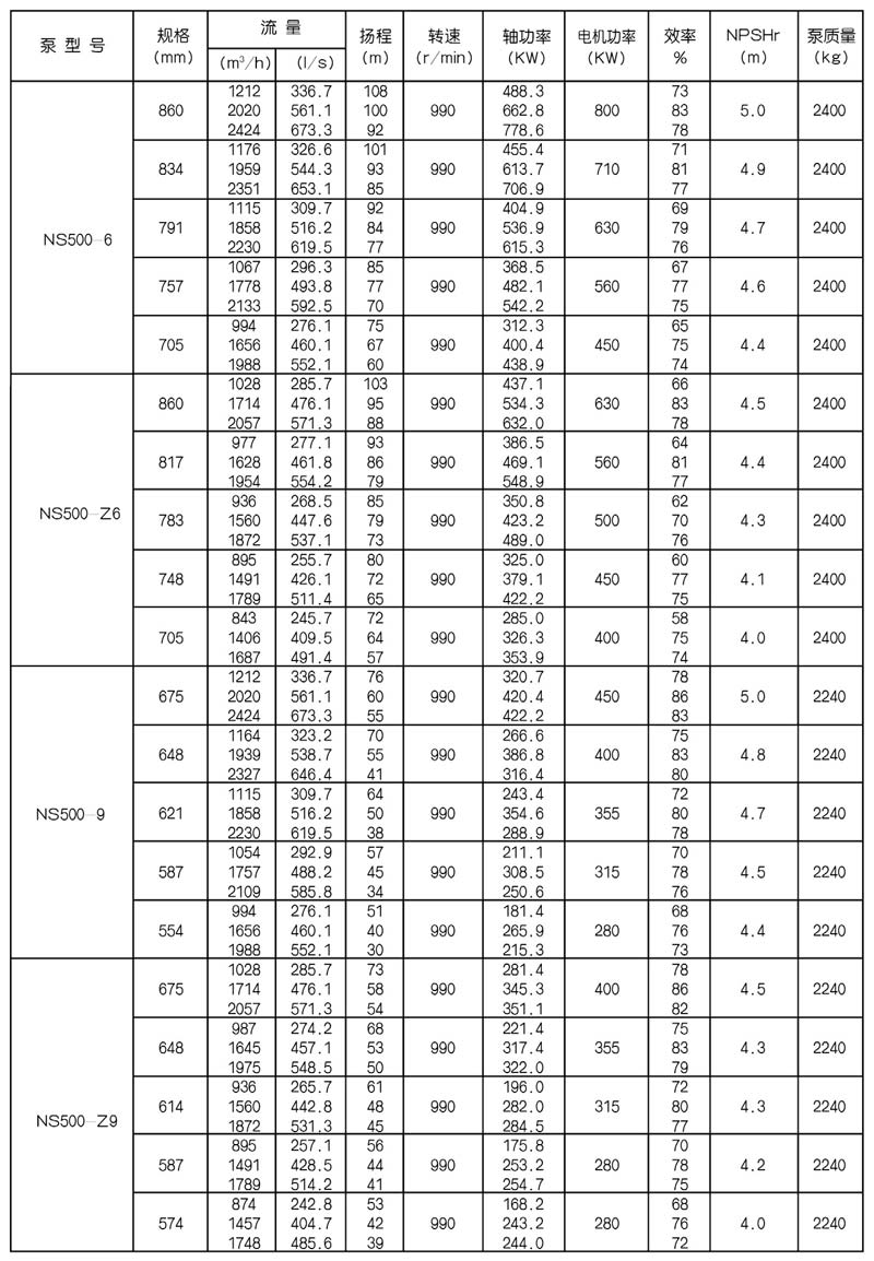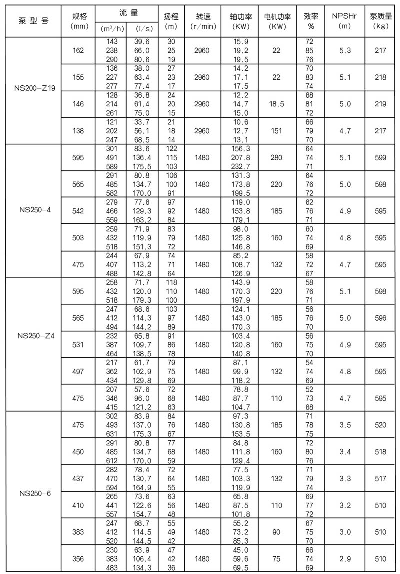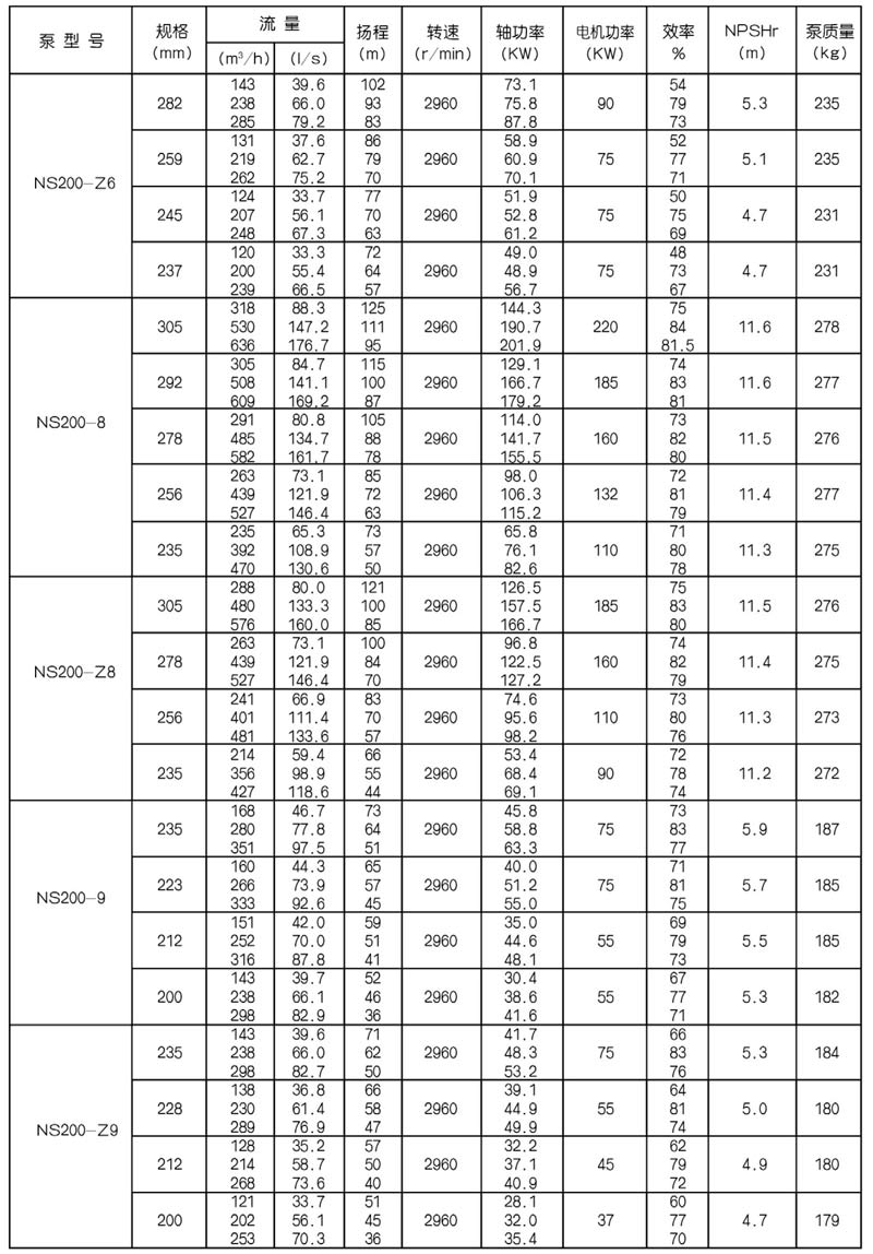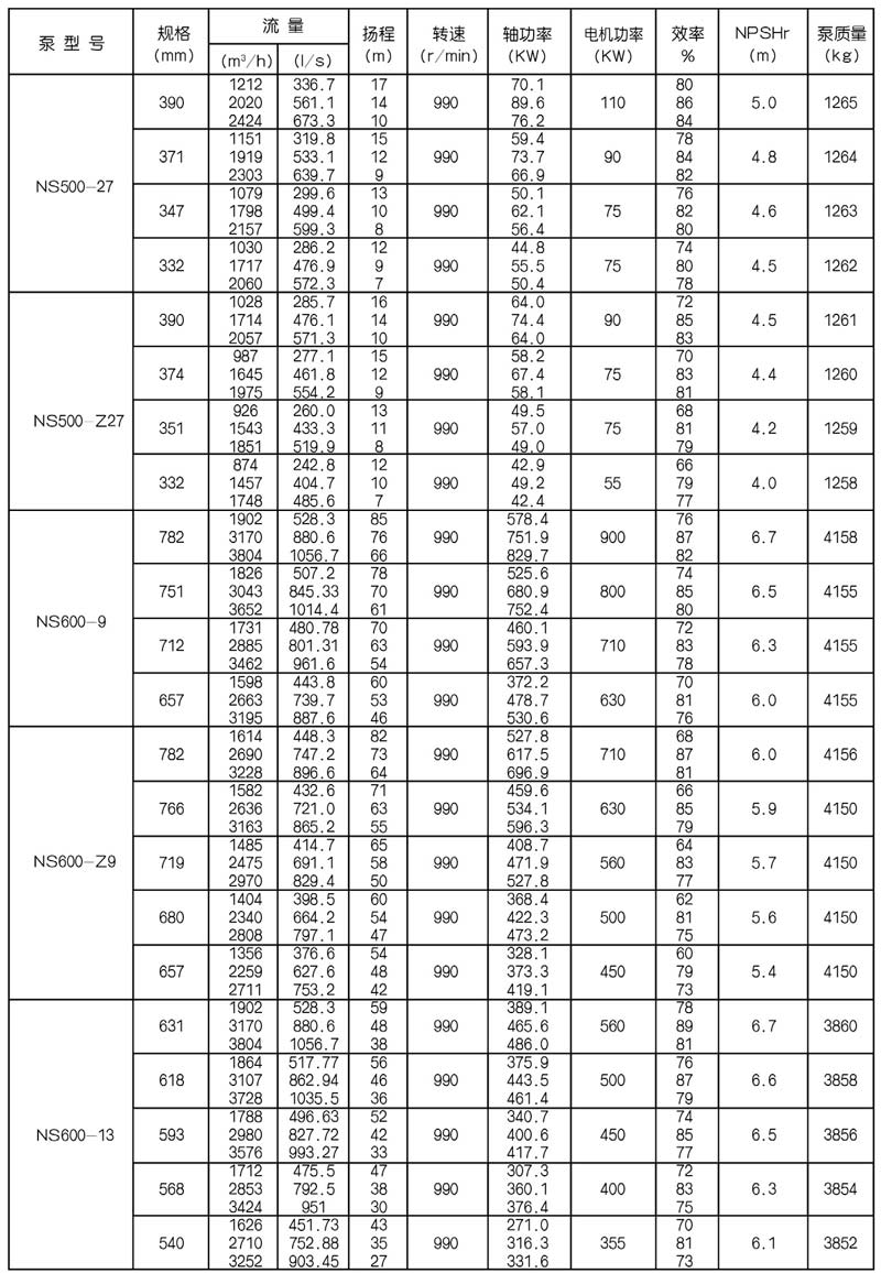 NS型單級雙吸中開式離心泵是我公司總結(jié)國(guó)內外優秀水(shuǐ)力模型(xíng),廣泛吸收國內外同類產品(pǐn)先進的(de)設計製造技術,根據國內市場實際需要開發的新型中開式雙吸(xī)泵。全係列泵(bèng)型譜內各型號(hào)規劃更加科學合理,高揚程雙吸泵可以代替部分多級泵,大流(liú)量雙吸泵可以代替部分混流泵,優化(huà)匹(pǐ)配各水力尺寸,汽(qì)蝕和效率兼顧,滿足GB/T19762能效評價值,達(dá)到節能目標。結構再創新,運轉可靠維護方便、延長(zhǎng)使用壽命,使中開(kāi)式雙吸離心泵優秀泵型發揮(huī)更大效益。我公司目前生產的雙吸(xī)泵有46種型號,390個規格,處於節能和使(shǐ)用性能(néng)範圍考慮,一個(gè)型號有兩種葉輪,叫標準(zhǔn)葉輪和窄葉輪,以更優性能滿足使用工況要求(qiú)。本(běn)係列泵符合ISO2548C、GB3216、GB/T5657標準。