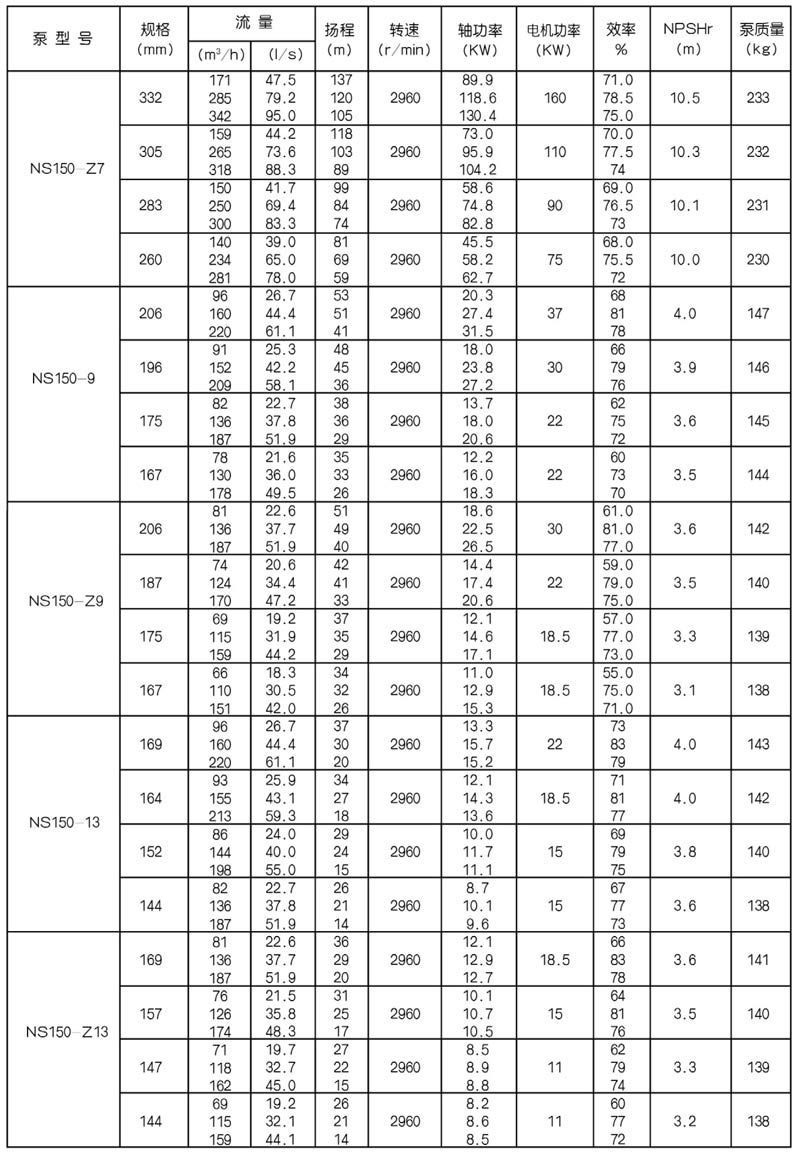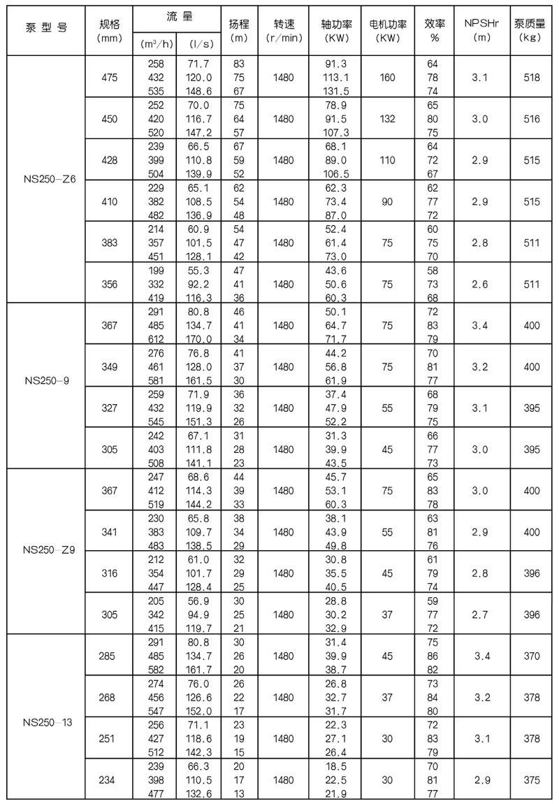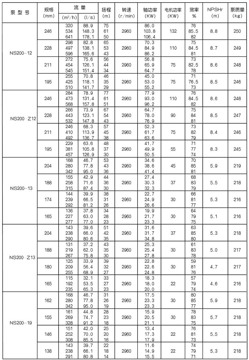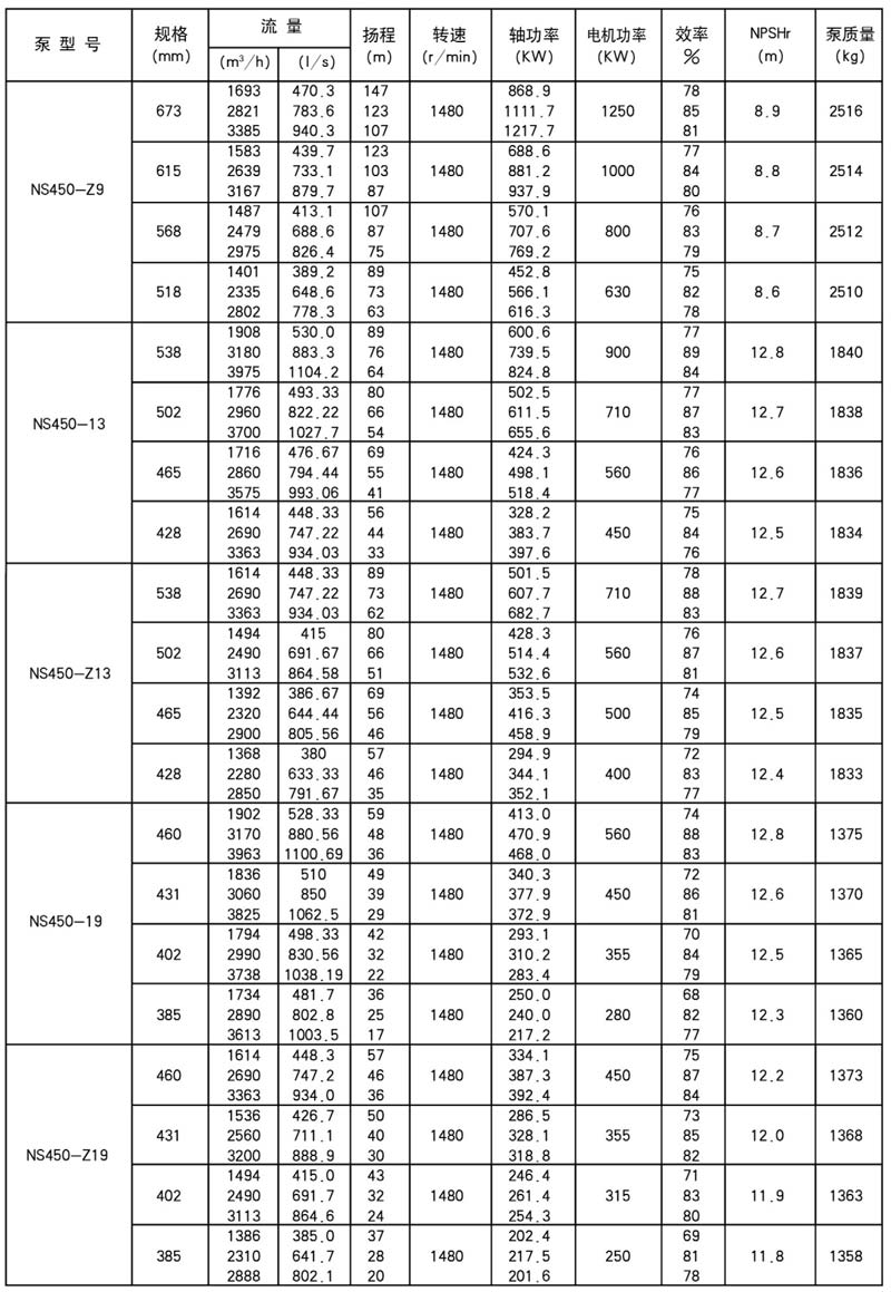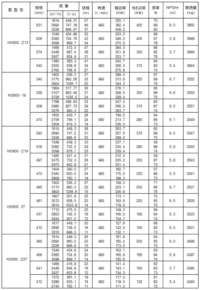 NS型單級雙吸中開式離心泵是我公司總結(jié)國(guó)內外優秀水(shuǐ)力模型(xíng),廣泛吸收國內外同類產品(pǐn)先進的(de)設計製造技術,根據國內市場實際需要開發的新型中開式雙吸(xī)泵。全係列泵(bèng)型譜內各型號(hào)規劃更加科學合理,高揚程雙吸泵可以代替部分多級泵,大流(liú)量雙吸泵可以代替部分混流泵,優化(huà)匹(pǐ)配各水力尺寸,汽(qì)蝕和效率兼顧,滿足GB/T19762能效評價值,達(dá)到節能目標。結構再創新,運轉可靠維護方便、延長(zhǎng)使用壽命,使中開(kāi)式雙吸離心泵優秀泵型發揮(huī)更大效益。我公司目前生產的雙吸(xī)泵有46種型號,390個規格,處於節能和使(shǐ)用性能(néng)範圍考慮,一個(gè)型號有兩種葉輪,叫標準(zhǔn)葉輪和窄葉輪,以更優性能滿足使用工況要求(qiú)。本(běn)係列泵符合ISO2548C、GB3216、GB/T5657標準。
