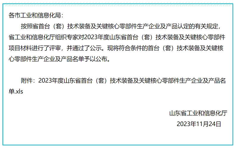 按照省首(shǒu)台(套)技(jì)術裝備及關鍵核心零部(bù)件生(shēng)產(chǎn)企業及產品認定的有關規(guī)定,經各市工(gōng)業和信息化局推薦,專家評審等環節,擬將286種產品列入《2023年度山東省首台(套)技術裝備及關(guān)鍵核(hé)心零部件企業及產品名單》